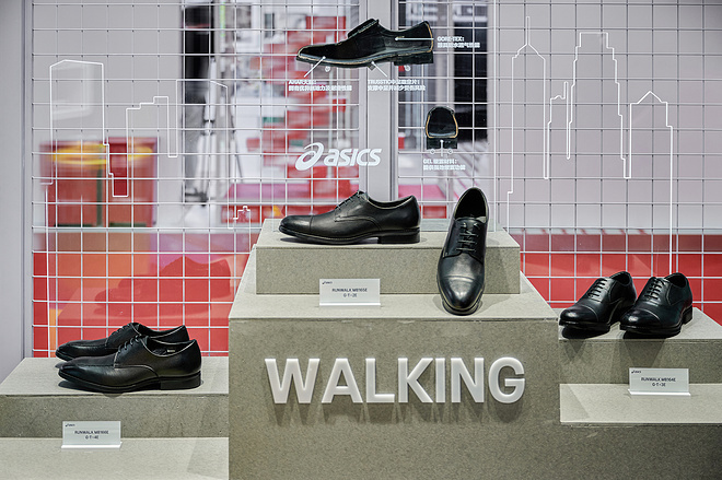 以“可以跑步的商务鞋”为主打概念的步行鞋产品首次亮相进博会。提供不同鞋楦宽度的步行鞋搭载GEL缓震胶以及耐磨AHAR大底,并于鞋仓内里配备GORE-TEX科技面料,能满足消费者商务与休闲等多样化需求。