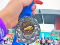 深圳马拉松2019 12.15 星期日SHENZHEN12月15日,深圳,当天气温17°~24°,首全马无伤完赛,净成绩434,两字总结:艰难。赛前:未尽兴的薅羊毛比赛前一天下午到达深圳,跟着小伙伴一起领物、薅羊毛,心情美美的就像吃了蜜罐里的糖。之前看跑友去广马、北马、上马的羊毛,首次中签双金赛事,以为能在深马薅到小戒指、小手环之类的小物。最后薅了一支美白饮、一杯桂圆银耳汤,还有3片乳贴,哈哈哈。(深马参赛包)很快入夜了,夜幕时分的市民广场亮起了耀眼的光束,强风送来一阵浓烈的桂花香,抬头便能望见不远处的莲花山,它悄无声息地躺在那,看着练舞的年轻人和领物的待跑者,静待着一场3万人的狂欢。开跑:太阳下夹缝中前行跑马前一晚又是异常的紧张和兴奋,11点入睡后平均每2小时就会醒来查看时间,生怕一个人睡过头。好在后面依然提前2分钟自然醒,6点多吃完面包后出发,7点左右到达起点。出门前,安猪团长知道这是